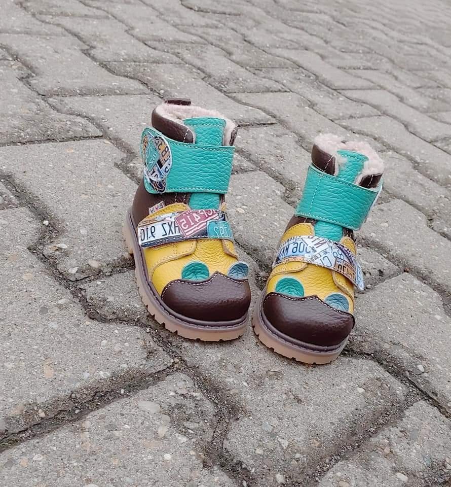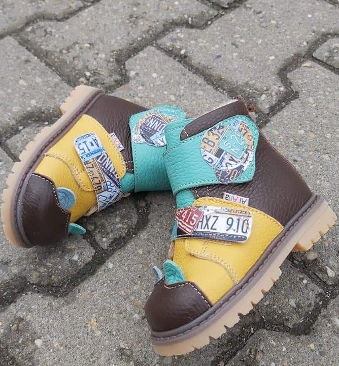 Brown,yellow and green natural leather short boots.